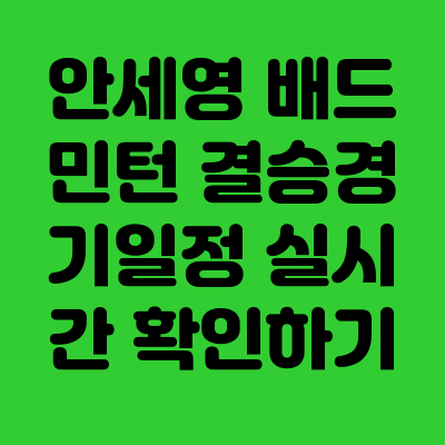 안세영 배드민턴 결승경기일정은 BWF 공식 앱인 'BWF Badminton'과 공식 홈페이지의 'Tournament Calendar' 메뉴를 통해 가장 정확하게 확인할 수 있습니다.